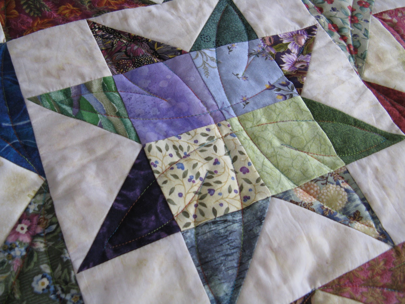 | I satin-stitched in between the lines, and played with Carol Taylors circle techniques. |